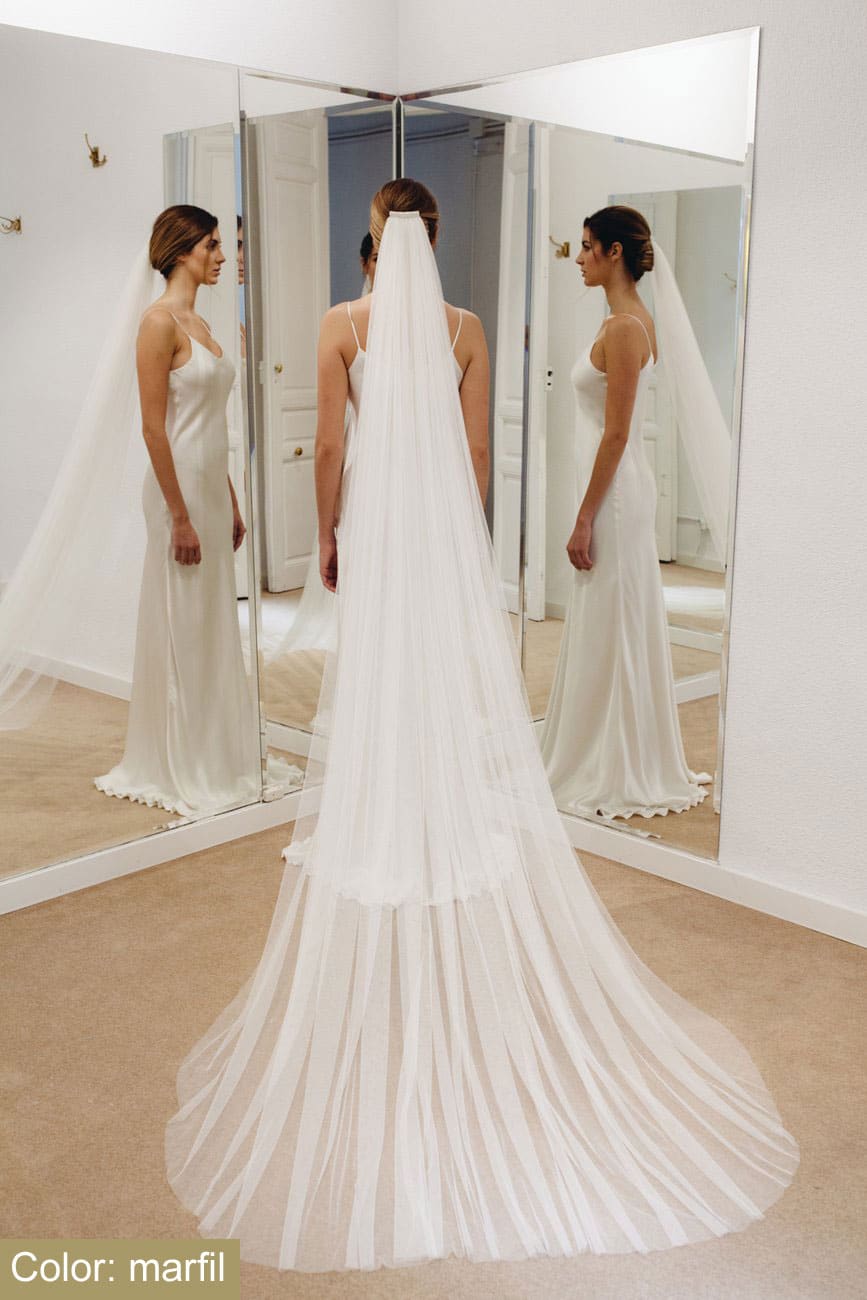 Elegante Velo Largo Estilo Catedral Para Novias Romanticas Foto Pronovias Velos Largos Vestido De Novia Pronovias Velos De Novia